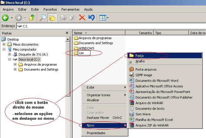 O arquivo do download deverá ser salvo na pasta c:\usr Click no link a seguir para verificar como criar a pasta c:\usr: Ilustração 1
